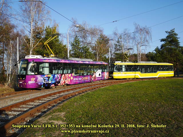 Vario LFR.S č. 352+353 na konečné Košutka 29. 11. 2018 Vario LFR.S č. 352+353 v zastávce Hlavní nádraží 21. 11. 2018 Od 21. 11. 2018 vozí na sobě Vario LFR.S č. 352 (soupravy 352+353) polep s převládající fialovou barvou a reklamou na Casino v obchodním centru Plaza. V té podobě je v provozu přibližně rok.