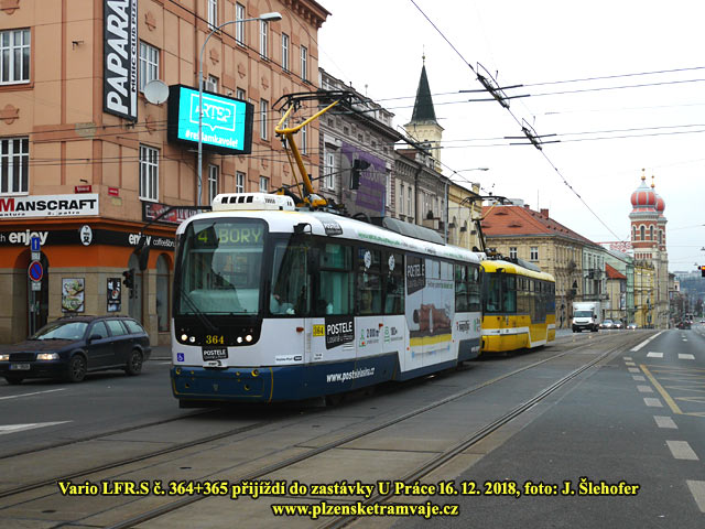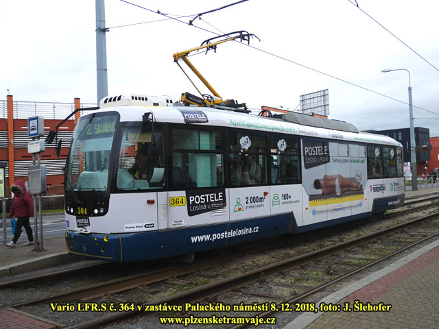 Vario LFR.S č. 364 v zastávce Palackého náměstí 8. 12. 2018 Souprava Vario LFR.S č. 364+365 v zastávce U Práce 16. 12. 2018 Od pondělí 3. 12. 2018 je vypravováno další reklamní Vario LFR.S a sice č. 364. S převládajícím bílým podkladem vozí reklamu na Postele Losiná. Za zvýšeným výskytem nových reklam může být snaha firem utratit peníze před koncem roku.