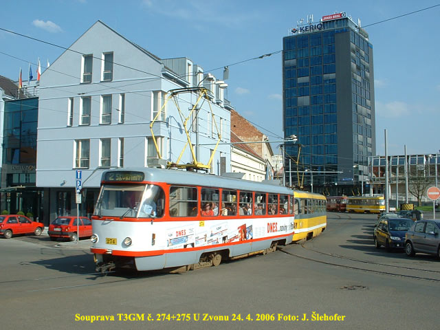 Souprava 274+275 s novou Reklamou na MF Dnes 24. 4. 2006 Souprava 274+275 s novou Reklamou na MF Dnes 24. 4. 2006 V pondělí 24. 4. 2006 se v provozu ukázala nová reklama propagující deník MF Dnes na na voze č. 274 ze soupravy 274+275. Vůz je v červeno bílo šedé kombinaci a velmi připomíná nátěr olomouckých tramvají.