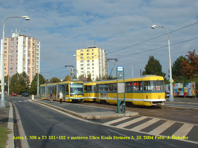 Astra 304 v zastávce Ul. Terezie Brzkové 24. 2. 2002 Historická (šmoulí) T1 č. 121 v zastávce Macháčkova 16. 6. 2002 Souprava 190+191 v zastávce Macháčkova 18. 5. 2004 Setkání prototypů ve Skvrňanech - Vektra na lince č. 2 a Astra 300 při zkušební jízdě po výměně brzdového systému 12. 7. 2004