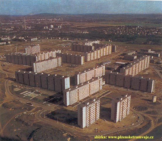 Pohled na sídliště Skvrňany od severozápadu v sedmdesátých letech Pohled na sídliště Skvrňany od severozápadu v sedmdesátých letech Sídliště Škvrňany bylo budováno v letech 1967 - 1977 a jeho výstavba dále pokračuje podnikovou a družstevní výstavbou a dokončováním objektů občanské vybavenosti. Za uplynulé období zde plzeňští stavbaři postavili 3 800 bytových jednotek. Samotné stavbě sídliště předcházelo vybudování rozsáhlého areálu učňovských škol a internátů OP Škoda.