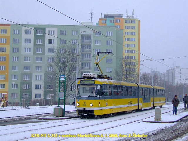 Vektra na lince č. 2 v ulici Terezie Brzkové 30. 6. 2004 Souprava 266+267 v ulici Terezie Brzkové 29. 12. 2005 K3R-NT č. 313 v zastávce Macháčkova 6. 1. 2008 Zastávka ulice Karla Steinera s Astrou 308 a T3 101+102 dne 3. 10. 2004