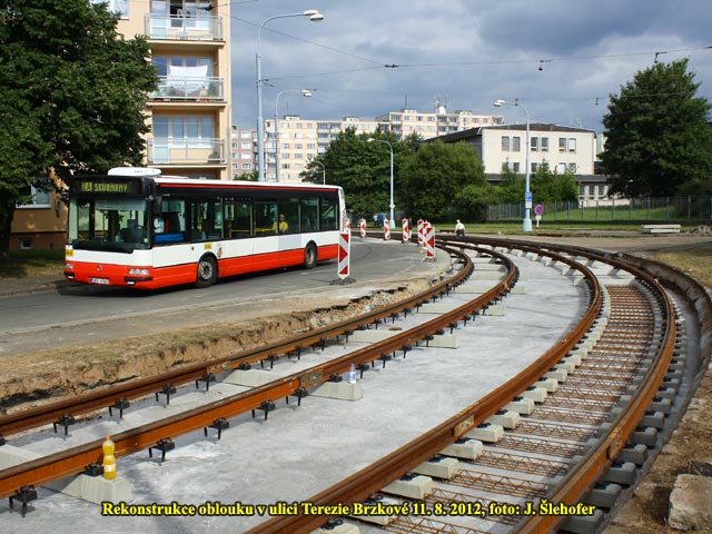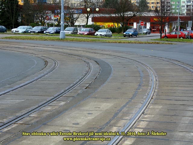 Oblouk v ulici Terezie Brzkové 6. 11. 2010 Oblouk v ulici Terezie Brzkové s vozy 235 a 255 - 15. 11. 2009 V roce 2014 mělo dojít k rekonstrukci kolejiště přibližně od křižovatky u zdravotního střediska, přes zastávku Macháčkova až do zastávky Terezie Brzkové. Nejen oblouk před ní, byl již ve špatném stavu a byla zde omezena rychlost na 15km/hod.