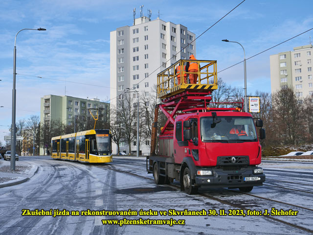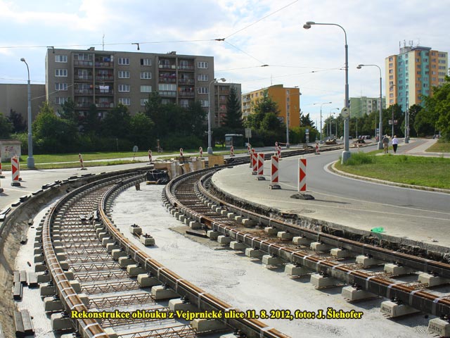 Rekonstrukce oblouku před konečnou ve Skvrňanech 1. 2013 Vario č. 342 přijíždí do Skvrňan 26. 1. 2013 Oblouky z BKV panelů vzniklé při rekonstrukci v devadesátých letech již dožívají a jsou postupně rekonstruovány novějšími technologiemi. To byl v roce 2012 případ oblouku z Vejprnické ulice do sídliště a v ulici Terezie Brzkové před konečnou.