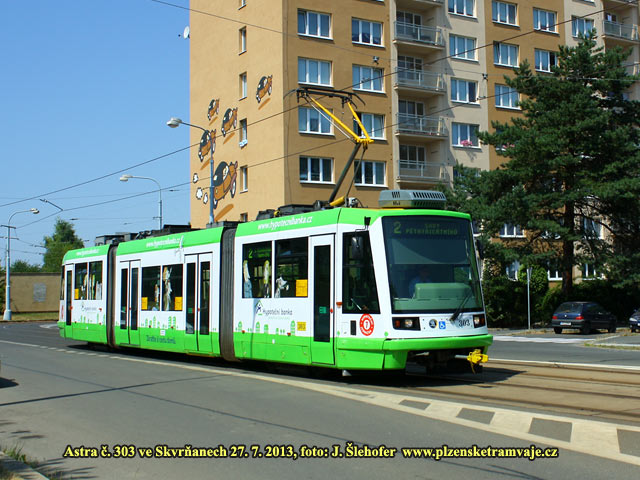Astra č. 303 v ulici Terezie Brzkové 27. 7. 2013 Testovaný vůz Škoda 26T pro Miskolc ve Skvrňanech 7. 7. 2013 T3 č. 187 při poslední jízdě T3 v Plzni v zastávce Macháčkova 4. 11. 2012 Vario č. 350 v ulici Terezie Brzkové 13. 10. 2013