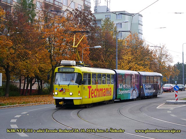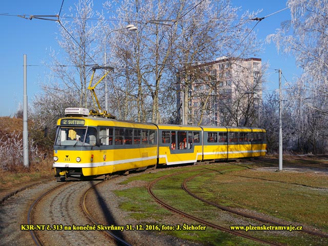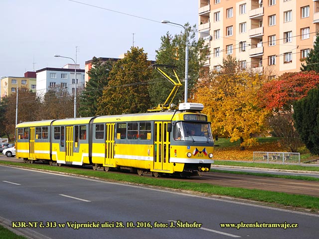 K3R-NT č. 311 v ulici Terezie Brzkové 28. 10. 2016 K3R-NT č. 313 ve Vejprnické ulici 28. 10. 2016 K3R-NT č. 313 ve Skvrňanech 31. 12. 2016 Souprava 325+196 na Vejprnické třídě 28. 10. 2016