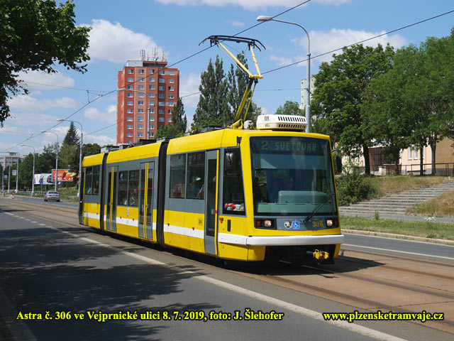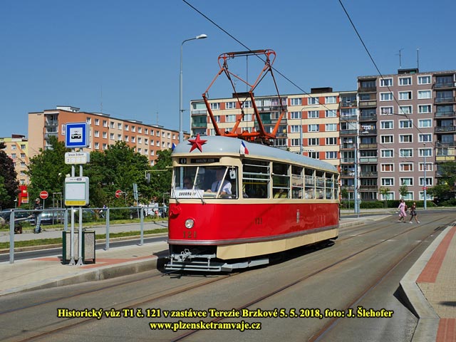 T1 č. 121 v zastávce Terezie Brzkové 5. 5. 2018 T1 č. 121 v zastávce Terezie Brzkové 10. 6. 2018 Astra č. 306 u zastávky Školy Vejprnická 8. 7. 2019 EVO2 č. 373 v ulici Terezie Brzkové 10. 4. 2020