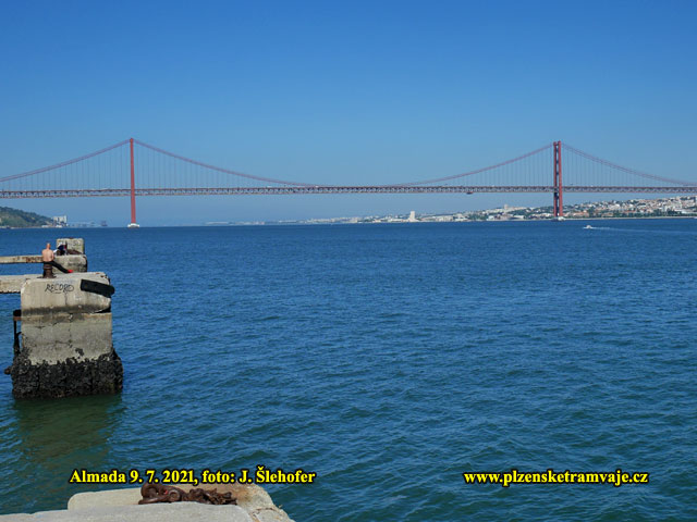 jehož délka je 2 277 metrů. Do Almady je možné se svézt atobusovou linkou MHD z Lisabonu, železnicí, nebo využít trajektové spoje.