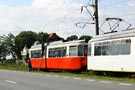 Na obrázku vlevo je původně innsbrucká tramvaj zachycená na konečné u elektrárny CET. Také na tuto konečnou zajíždí také jen několik málo spojů za den.