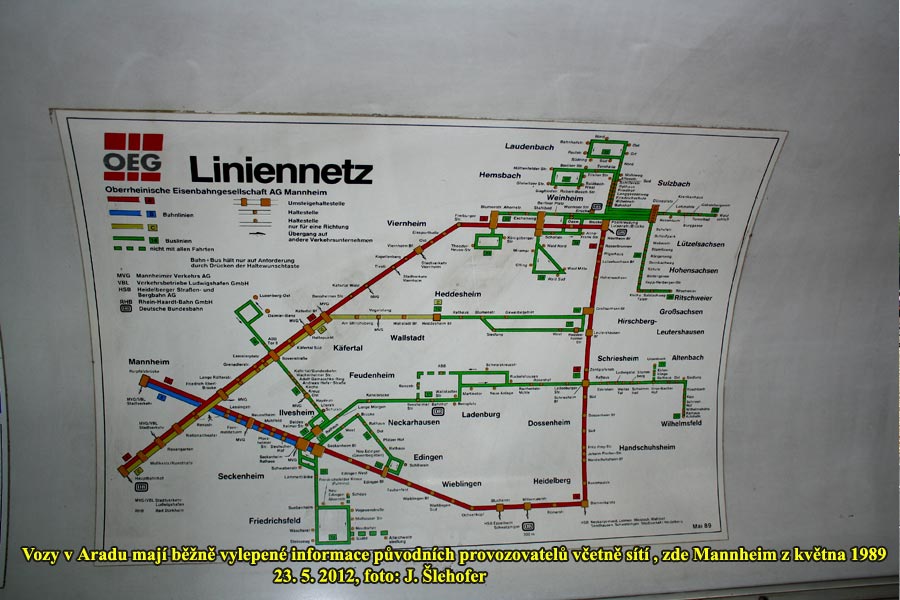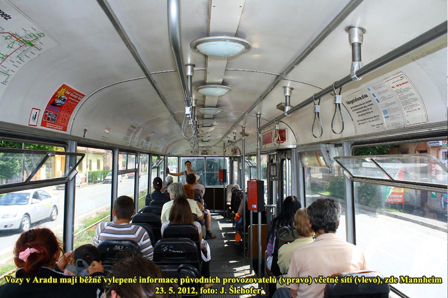sítí z těchto měst: Stuttgart, Mannheim, Ludwigshafen, Essen, Innsbruck a další. Příkladem je pohled do interiéru jednoho vlečného vozu z Mannheimu. Za povšimnutí stojí i jednoduše rekonstruované osvětlení,