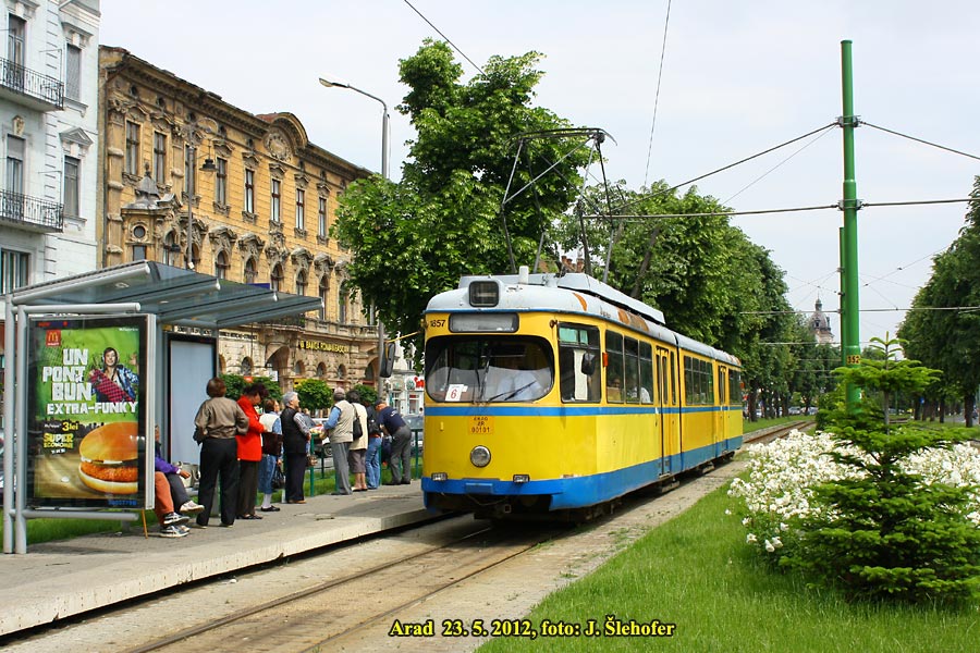 Kromě moderních nových tramvají je na kolejích v Aradu k vidění stále mnoho zajímavých vozů pocházejících z různých tramvajových provozů.