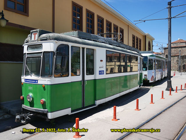 U vozovny jsme viděli také vůz Gotha T57 z roku 1960 (foto vpravo). Ten se sem dostal v roce 2010 z Istanbulu a původně pochází z německého města Jena. Před pár lety býval údajně na lince nasazován.