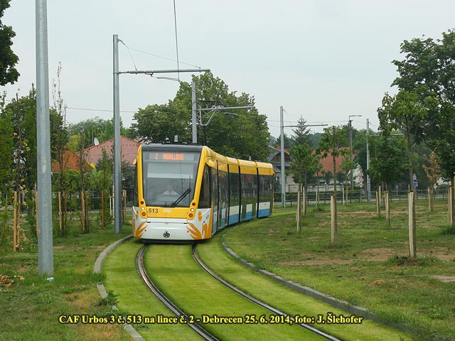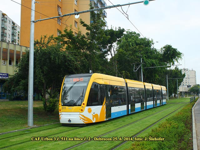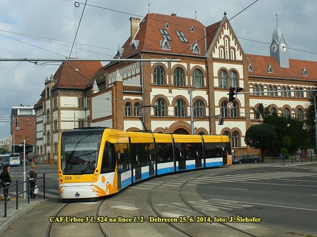 Začátkem roku 2014 byla v Debrecenu otevřena nová tramvajová linka č. 2, na které jezdí nové nízkopodlažní tramvaje CAF Urbos 3, tedy podobné jaké znám již z Bělehradu.