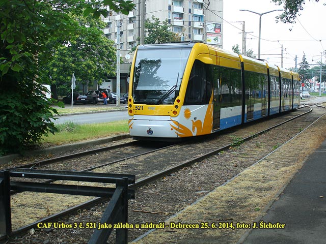 Debrecen jsem navštívil v červnu 2014. V té době již staré tramvaje "Bengál" v provozu nejsou vidět. I na odstavné koleji u nádraží stojí jako záloha již nový CAF.