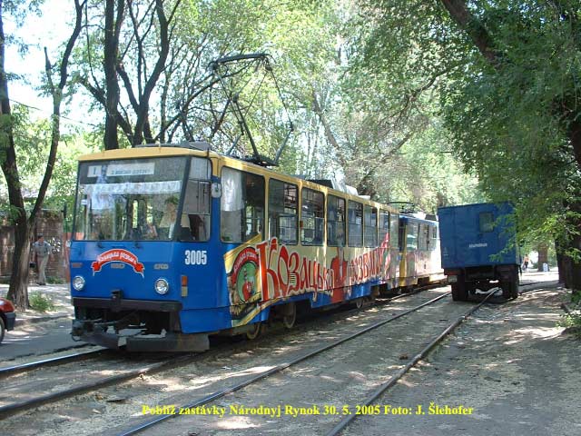 Vozový park v roce 2005 tvoří převážně tramvaje typu T3. Uvidíme je jak v typickém červeném nátěru, jako na fotografii vlevo