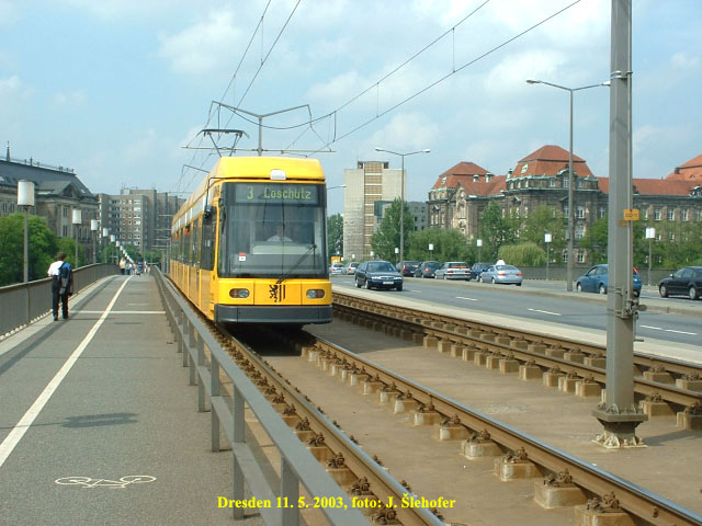 a jezdí na ní normální nízkopodlažní tramvaje NGT6 DD. Tato linka však vyjíždí mimo tarifní zónu