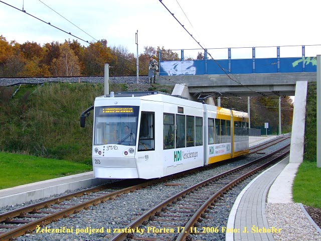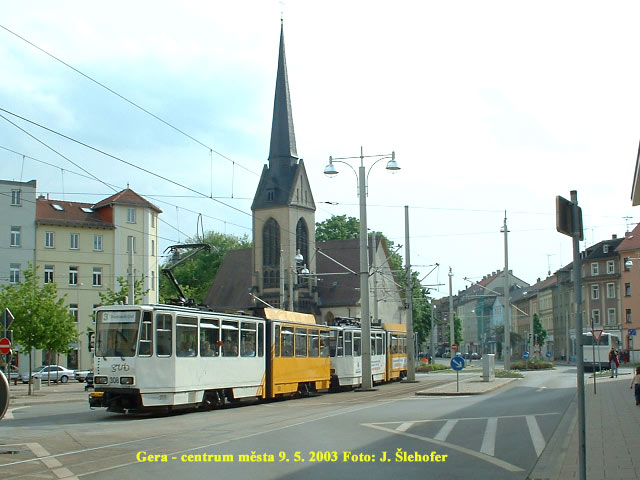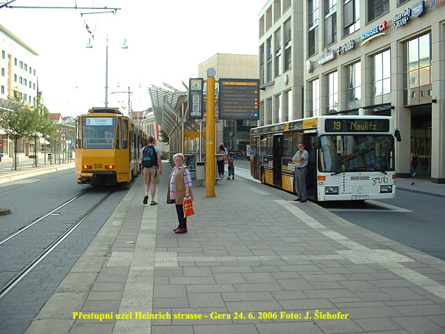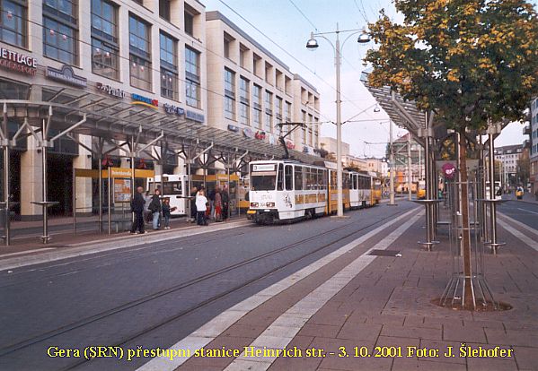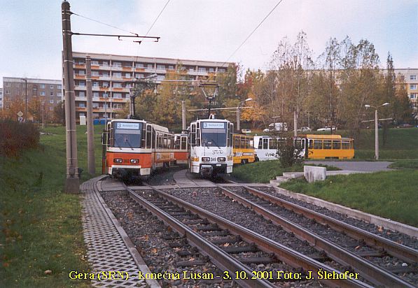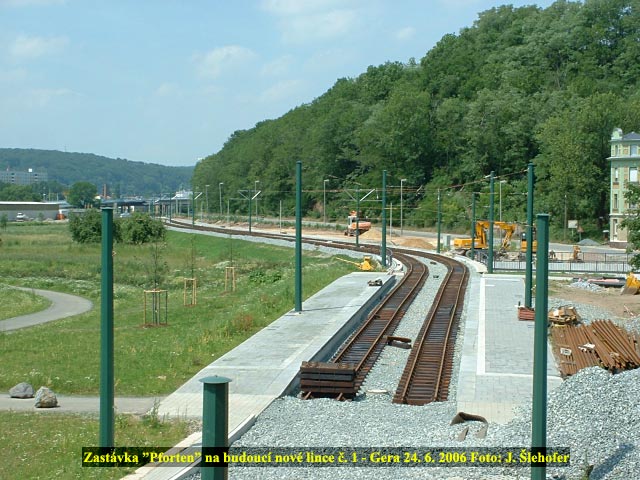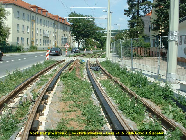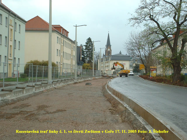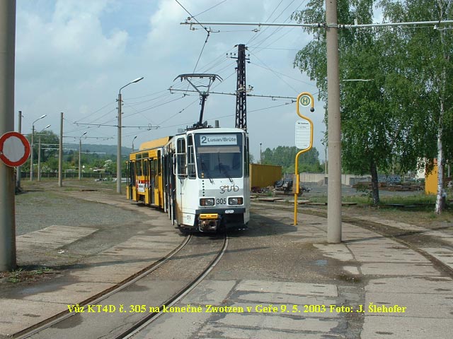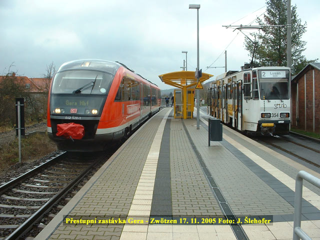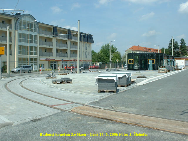 pak odbočkou kolem vozovny k železniční zastávce Zwötzen. Na fotografii vlevo je původní, nyní již zrušená konečná Zwötzen, ještě v roce 2003.