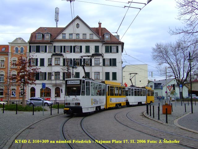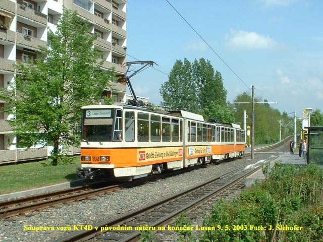 Na fotografii vpravo je tramvaj KT4D v bývalém oranžovém nátěru. V této podobě se s nimi dnes již nesetkáme.