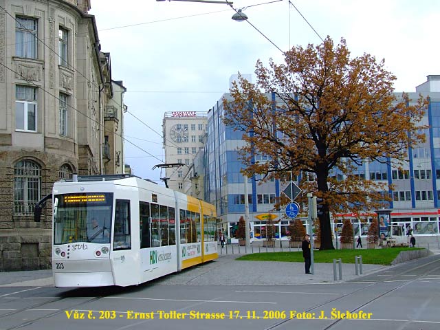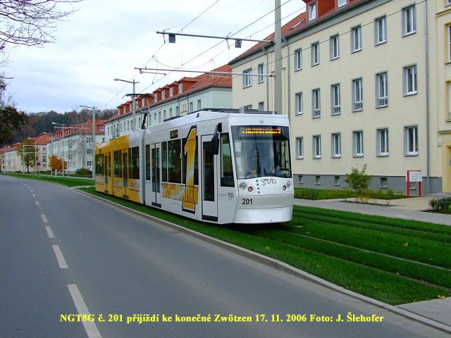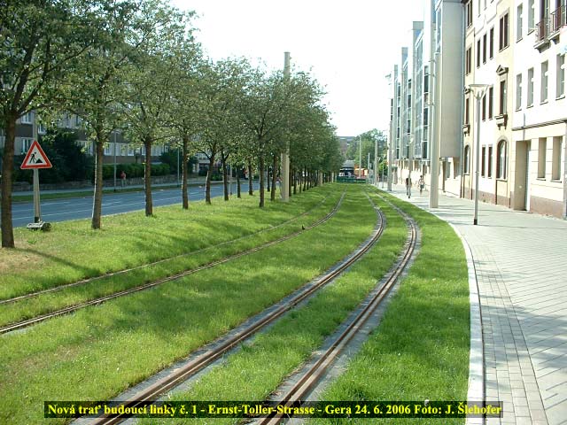 do čtvrti Zwötzen. Trať s délkou 6 km má 13 zastávek a jízdní doba je přibližně 18 minut. Mnohé úseky vedou mimo silnice se zatravněným svrškem, a je to učebnicový příklad podpory MHD.