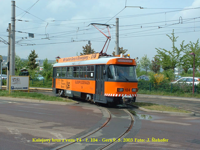 snímek kolejové brusu č. 104 u vozovny v Geře. Ten je v současné době již prodán a je u nás v v Liberci.