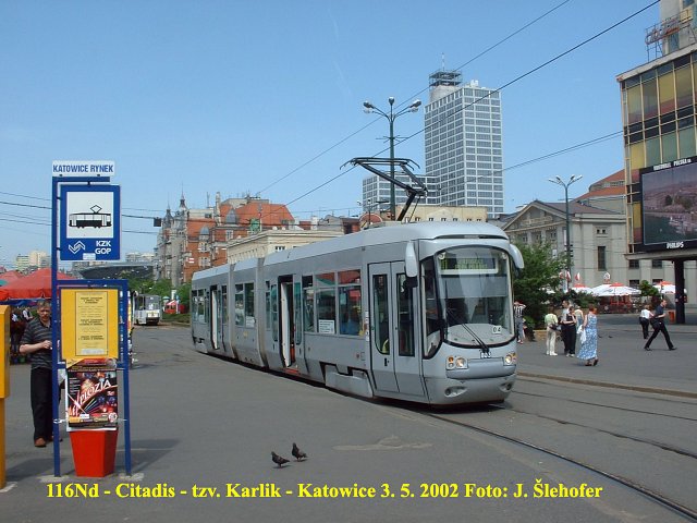 Zejména na linkách č. 6 a 41 jsou vypravovány nízkopodlažní vozy 116Nd (Citadis 100 Katowice) přezdívané také "Karlik". Tyto vozy mají dva krajní otočné povozky a jeden