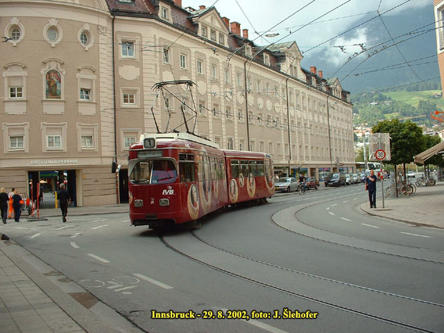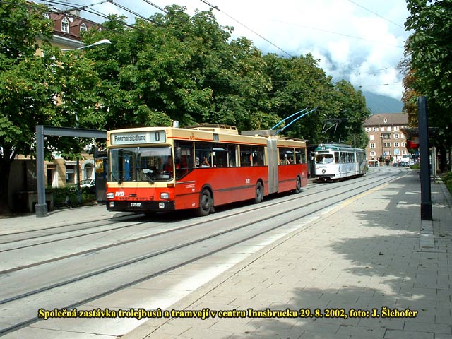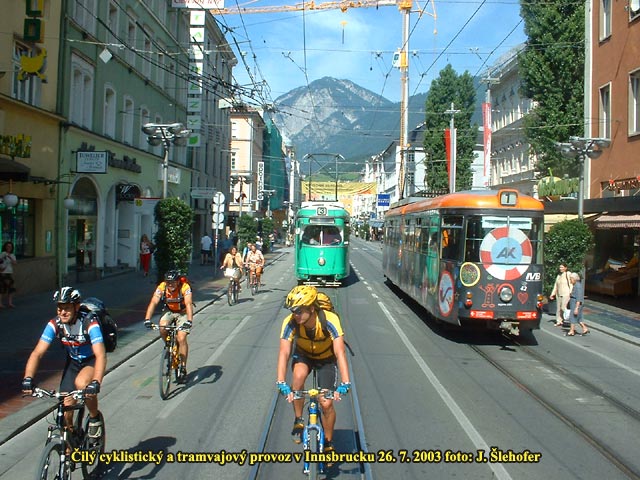 cyklistické stezky, ale i přeprava kol v tramvajích. Městskou dopravu v Innsbrucku pak zajišťují tramvaje a autobusy a do roku 2007 to byly i trolejbusy (viz. dvě fotografie vpravo).