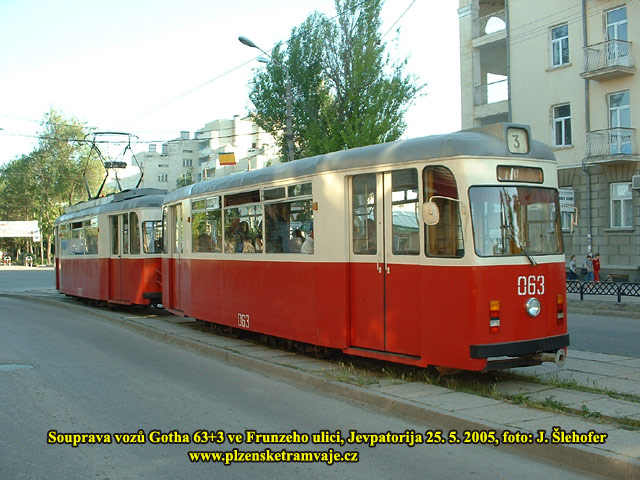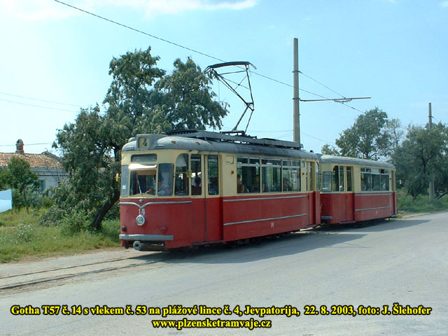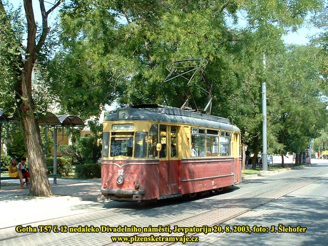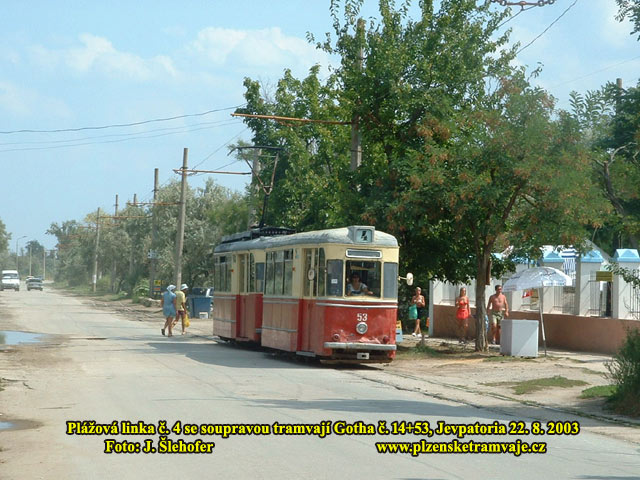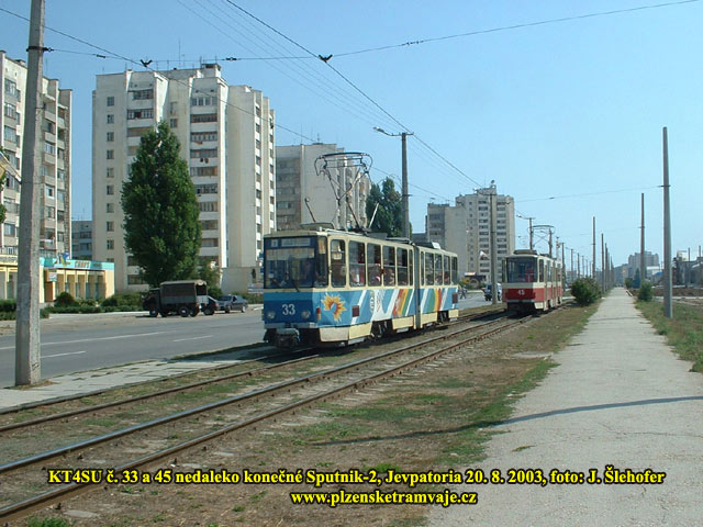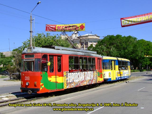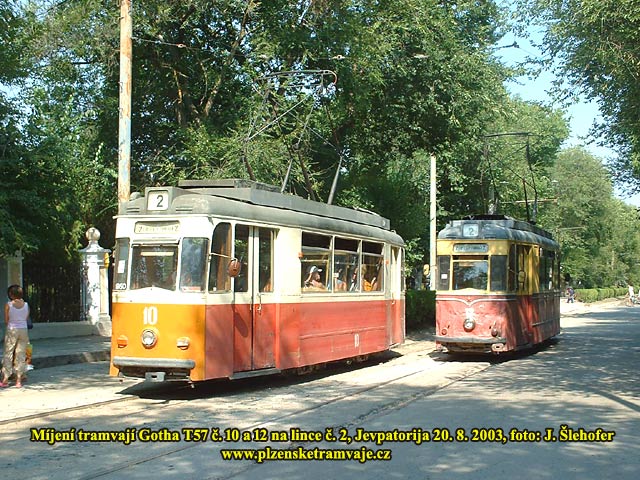 Jevpatoria je klidné a příjemné lázeňské městečko na poloostrově Krym. Žije zde něco málo přes sto tisíc obyvatel. Na převážně jednokolejné tramvajové síti s výhybnami