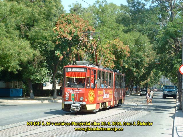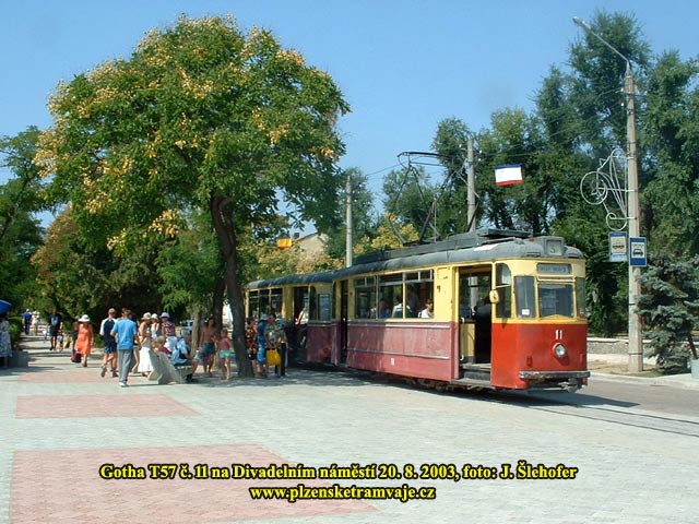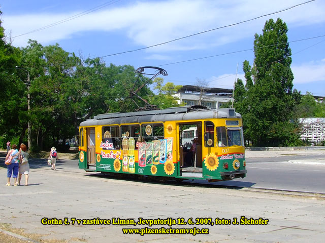 V červnu 2007 při mé třetí návštěvě jsem z obousměrněný vůz KT4SU č. 38 zastihl na lince č. 1 (foto níže). Některé tramvaje Gotha dostaly také celovozové reklamy.