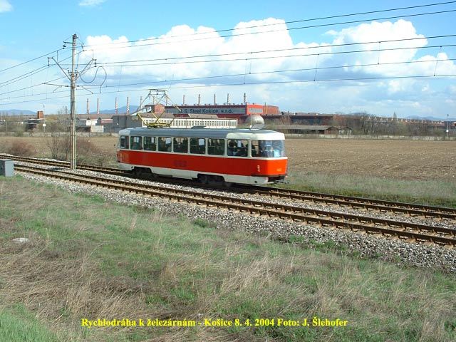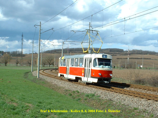 kilometrů k areálu železáren - dnes US Steel Košice (pozor, zdejší ochranka nemá pro focení tramvají příliš velké pochopení).