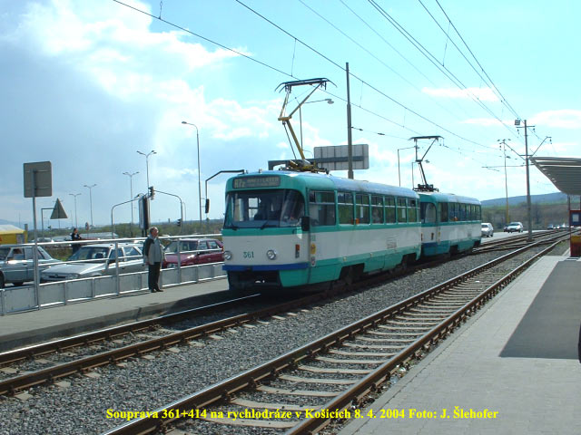 Vpravo je pak další avšak skromnější modernizovaná souprava č. 361+414.