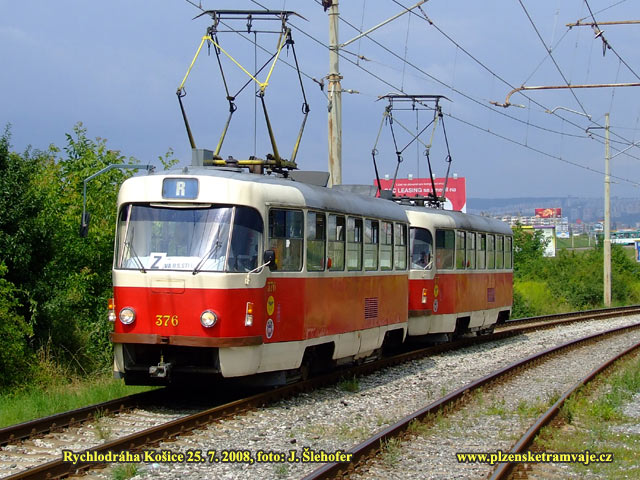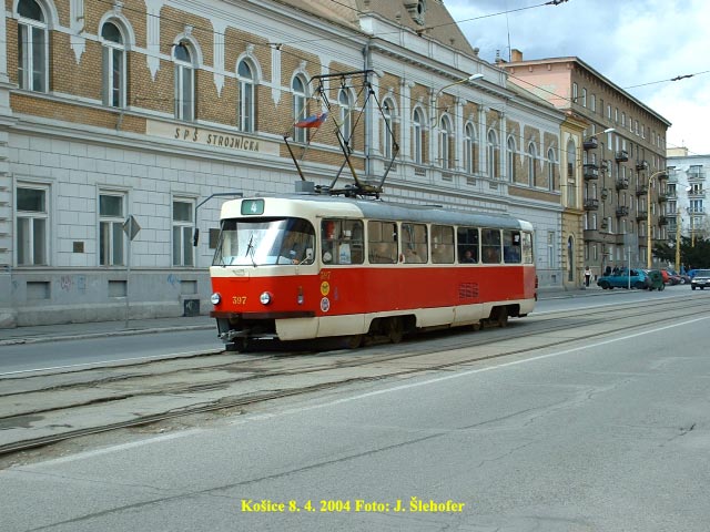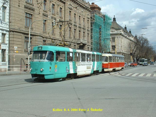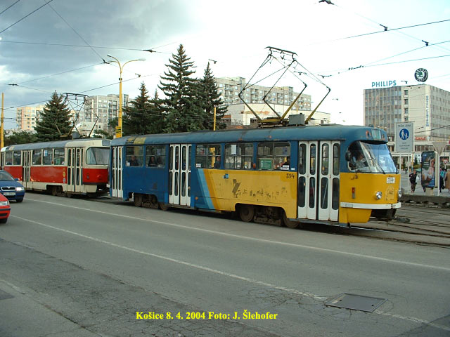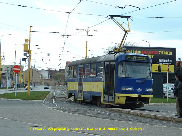 Na fotografii vlevo je tramvaj T3Mod č. 359, přezdívaná také jako Albatros a jedná se o první pokus o mernizaci tramvaj T3 v Košicích.