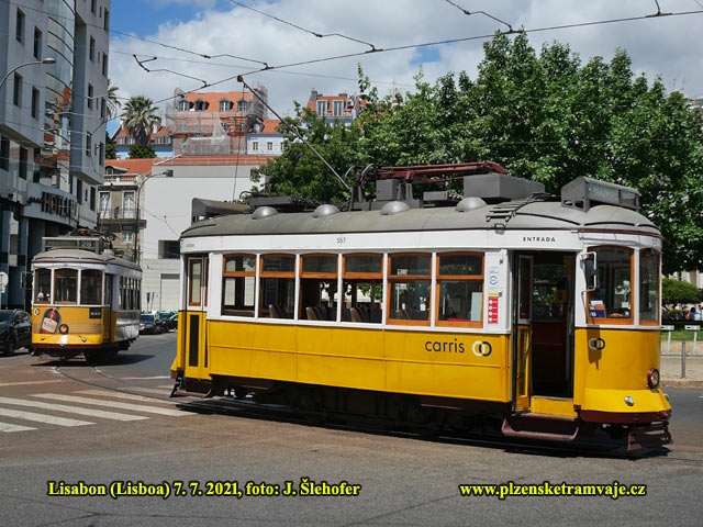 místní prvozovatel tramvají Carris, jich má deset. K večeru se však místo nich i na lince č. 15 objevují krátké dvounápravové vozy Carris Remodelado, jako na jiných linkách.