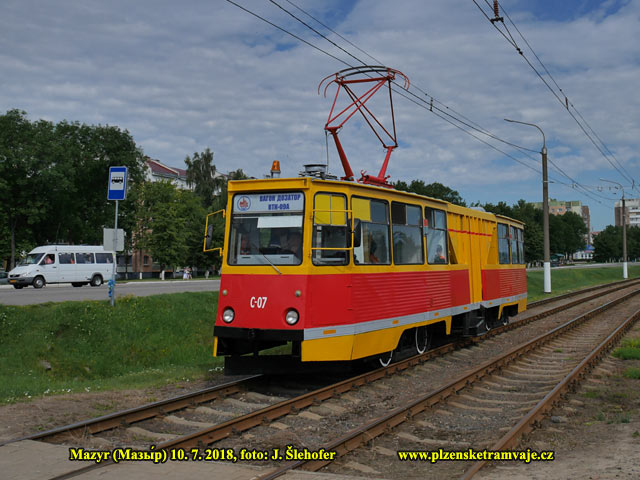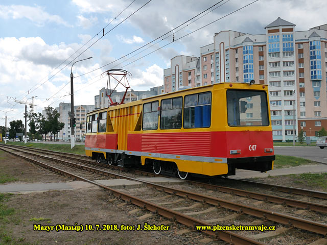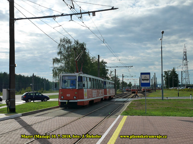 Provozovatelem tramvají je přímo Mozirskij NPZ (rafinérské závody), jak je poznat i na znaku na budově tramvajové vozovny.
