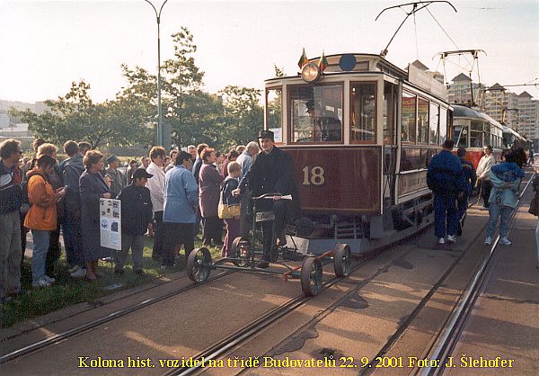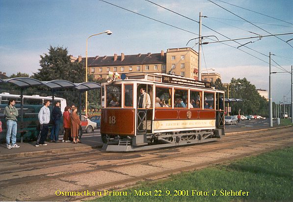 osmnáctka, tedy vůz z roku 1899. Průvod vyjel až na smyčku Most DP, kde se na chvilku