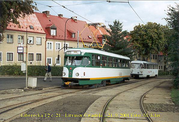meziměstské trati do Litvínova. Pořadí vozů bylo stejné jako ráno, tedy osmnáctka, T1, T2,