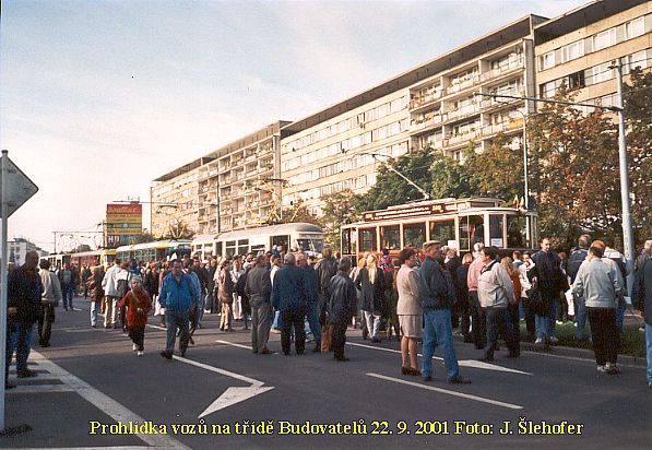 Po té se vydal třídou Budovatelů, kde se tramvaje mezi stanicemi Rozkvět a