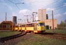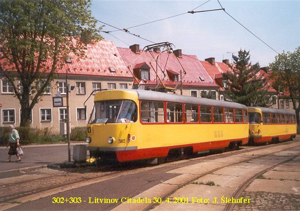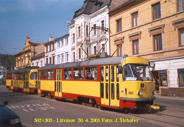 soupravy vozů 2xT3. Na fotografii, pocházející z Litvínova, je jedna z místních povedenějších