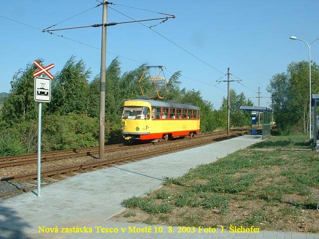 Na jaře 2003 byla v Mostě zprovozněna nová tramvajová zastávka na tramvajové trati mezi zimním stadiónem a nádražím. Nedaleko bylo otevřeno nové Tesco,