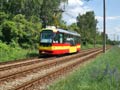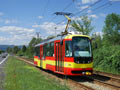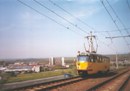 tramvaje jezdí v těsné blízkosti tříkolejné železniční tratí. Vyfotit