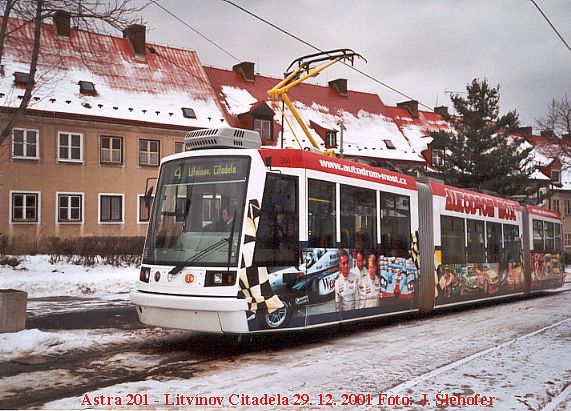 Tramvaj Astra ev. č. 201 je v té době vypravována celotýdenně (i o víkendu) na linku č. 4 (v době špičky na