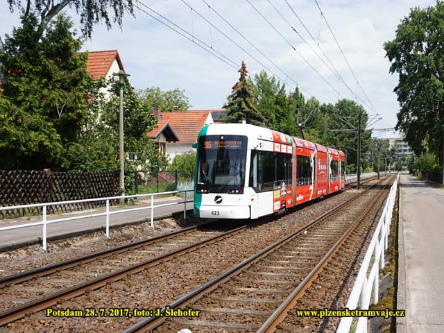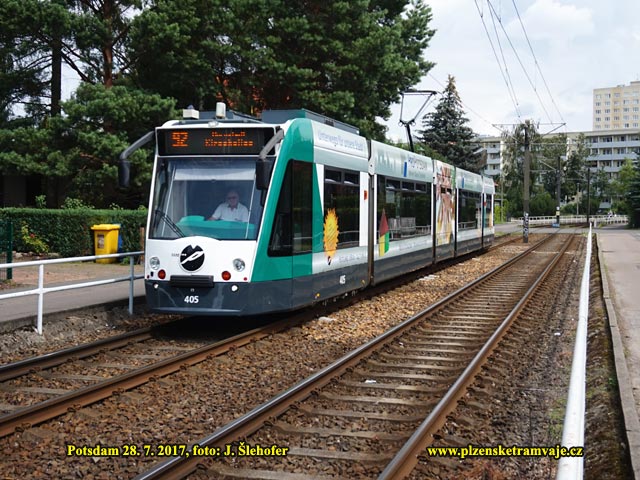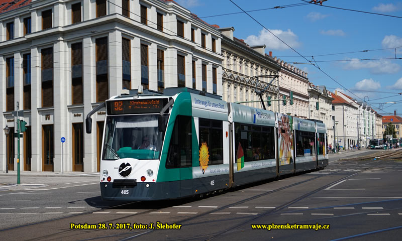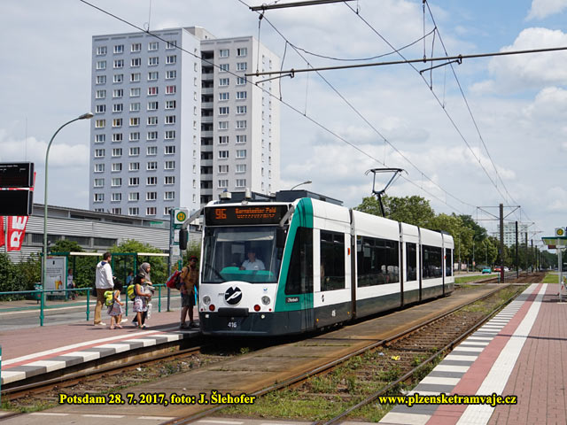 Německé město Potsdam leží nedaleko okraje města Berlín a dá se do něj dojet i berlínským S-bahnem (městskou železnicí). V Potsdami žije cca 150 tisíc obyvatel. Tramvajová síť má rozchod 1435mm a