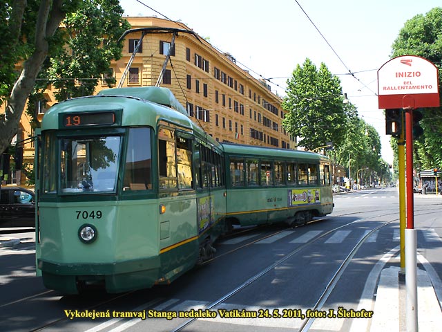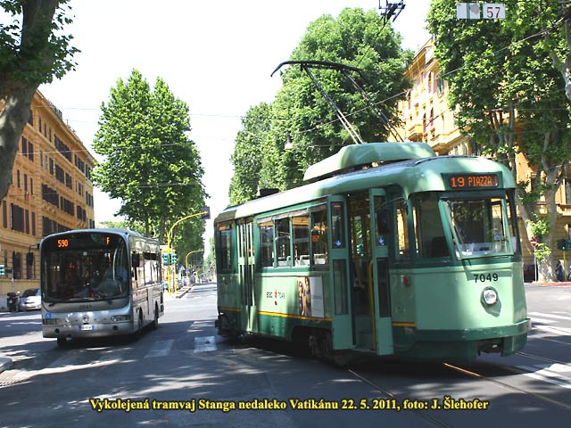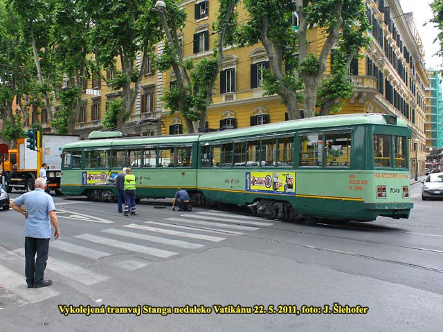Jednalo se o oblouk v křižovatce nedaleko před konečnou linky č. 19 u Vatikánu, kde tramvaj Stanga č. 7049 vykolejila středním podvozkem na