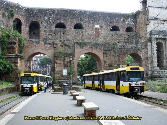 U akvaduktů na Piazza di Porta Maggiore se s tramvajovými linkami kříží zajímavá úzkorozchodná elektrifikovaná příměstská železnice