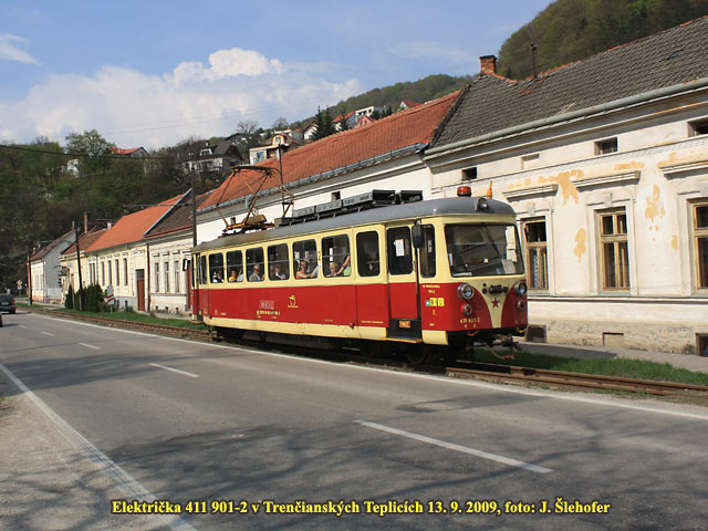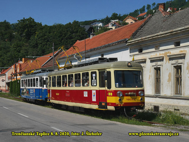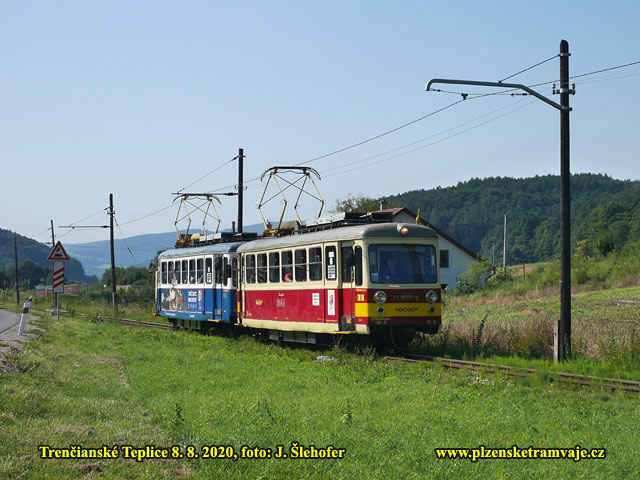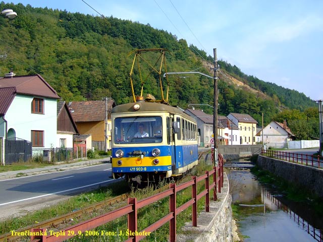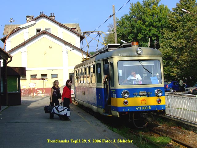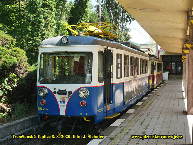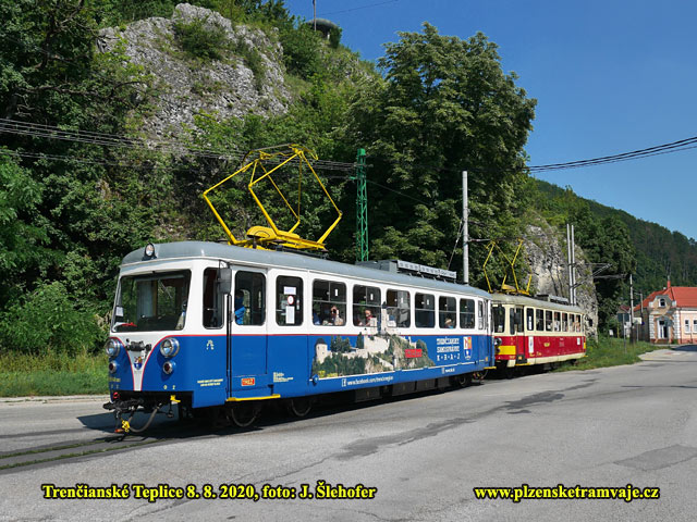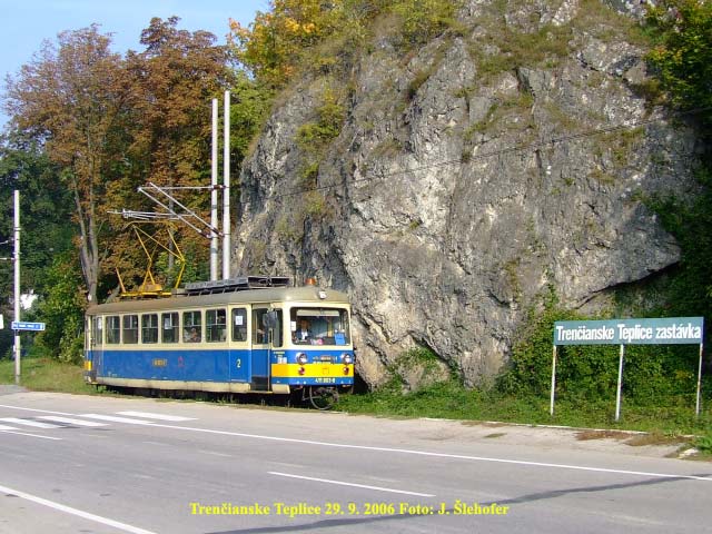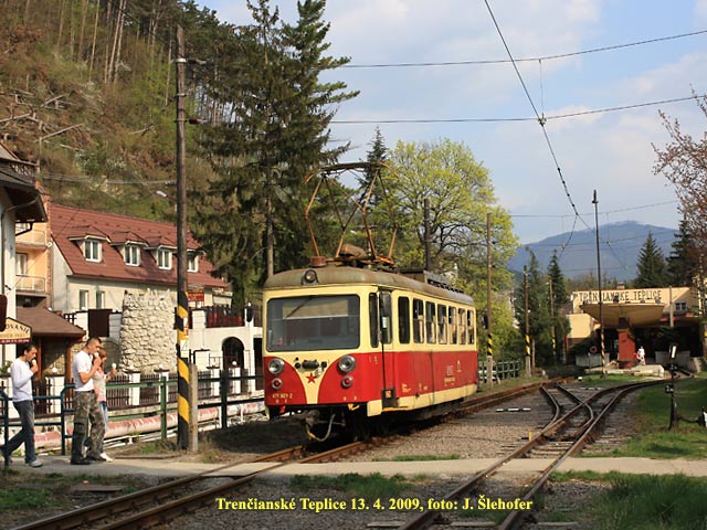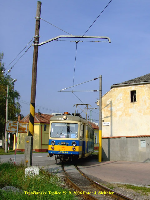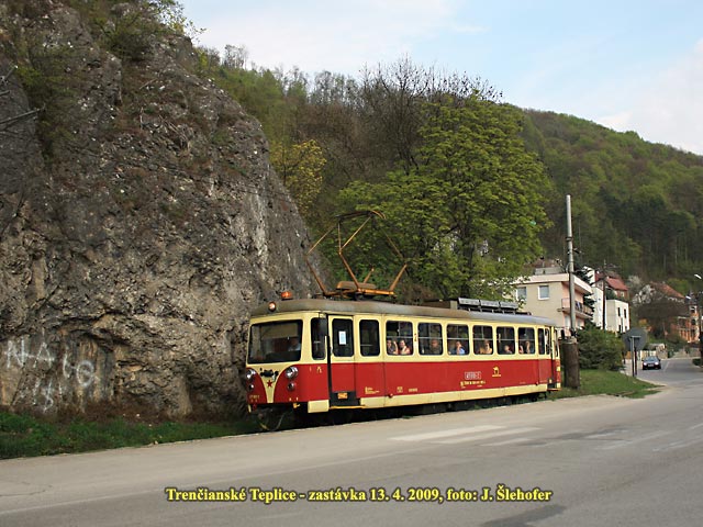 připomíná spíše tramvaj. Postupně projíždí zastávky Trenčianske Teplice,sídlisko a pak velmi fotogenickou zastávku Trenčianske Teplice, zastávka.