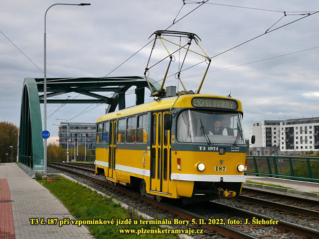 V sobotu 5. 11. 2022 tedy vyjíždí vůz T3 č. 187 ve 13:00 ze zastávky vozovna Slovany a vyráží na okružní jízdu. Jeho trase vedla přes zastávku U Zvonu do Skvrňan,