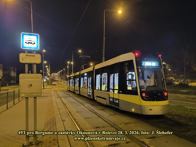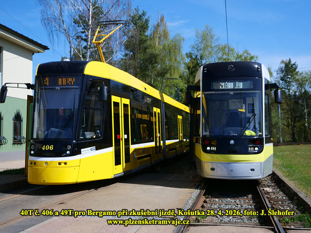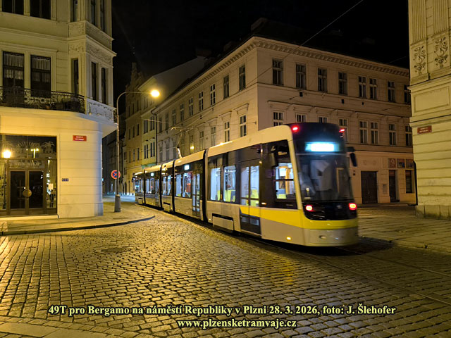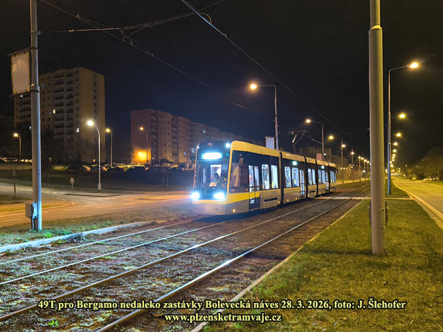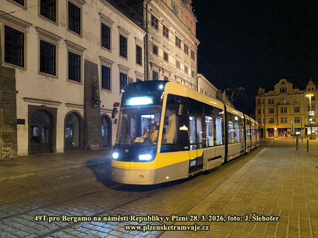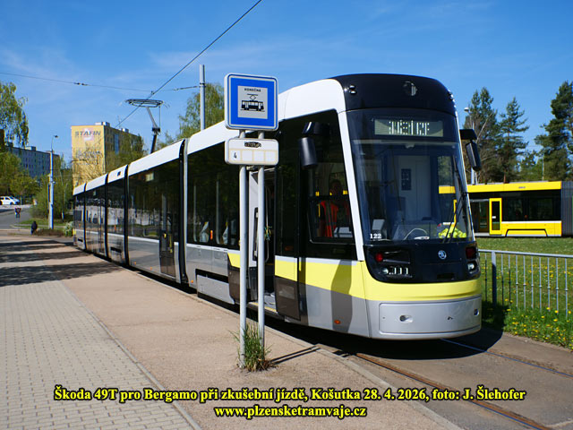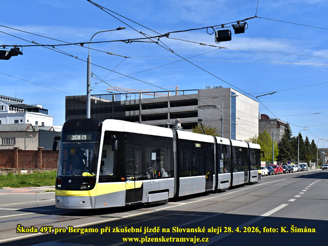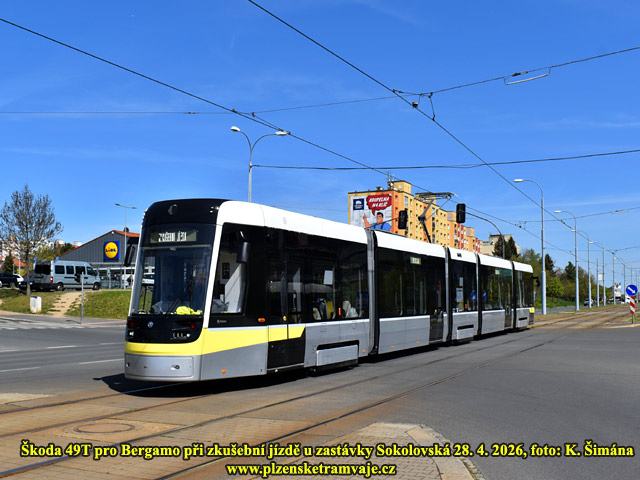 Tramvaj Škoda 49T V ulicích Plzně se objevuje další zkušební tramvaj určená pro jiného provozovatele. Tramvaje Forcity Classic, nebo také 49T, dodá místní výrobce v počtu deseti kusů pro italské město Bergamo. Zde mají být provozovány na nové lince T2, jejíž trasa povede po tělese zrušené železnice. Nejde tak o klasickou městskou tramvajovou trať, ale spíše o příměstskou rychlodráhu. Délka linky bude asi 12 km a bude mít asi 17 zastávek z nichž tři budou sdílené s již provozovanou linkou T1. Na lince T1 jsou v provozu tramvaje Sirio výrobce Ansaldo Breda. Tramvaj Škoda 49T je pětičlánkový vůz o délce 33 metrů a měl by mít kapacitu 281 lidí. Vůz má tři pevné podvozky a maximální rychlost 70km/hod. Vzhledem k tomu, že tramvaje budou provozovány na trati přestavěné z železnice, tedy zřejmě s oblouky o větších poloměrech, neměly by být pevné podvozky problémem.