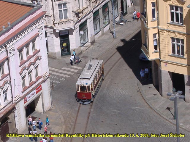 přes náměstí Republiky ke Zvonu a zpět. Jednotné jízdné bylo 20 Kč.