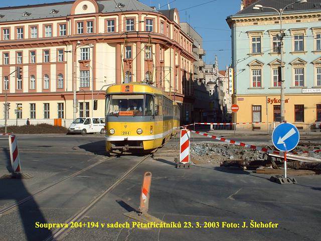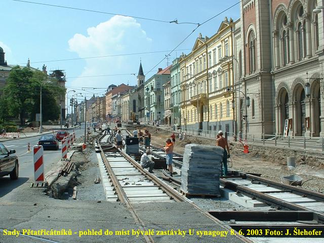 Ve čtvrtek 3. 4. 2003 je již kus nového kolejiště v křižovatce u hlavní pošty částečně zaasfaltováno.