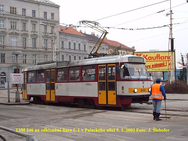 nasazen nemodernizovaný vůz T3. Naposledy tomu bylo letos v září, kdy několik dní jezdil sólo vůz T3 č. 200. Před tím