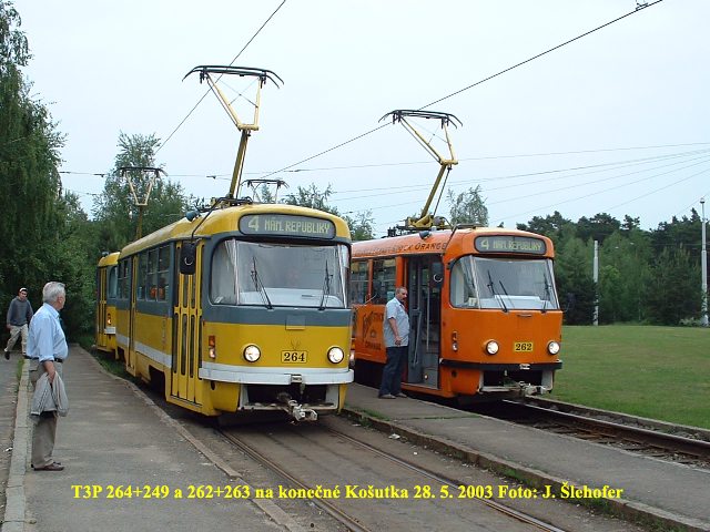 vozy T3P č. 264+287 spojené zády k sobě tzv. PX. Takto spojené soupravy doplní dvanáct obousměrných vozů KT8D5,